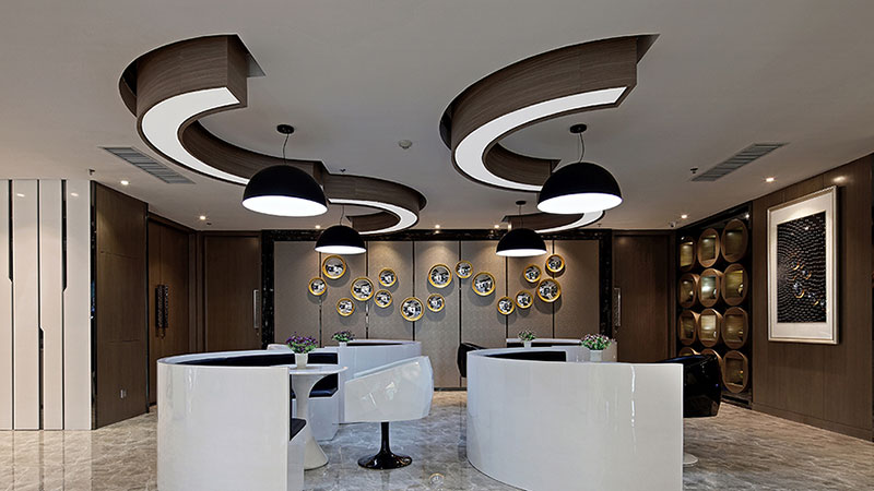 高雅大氣的裝修展示了企業(yè)的大氣的品牌風(fēng)范,需要從空間的規(guī)劃,又因?yàn)檫@是個(gè)跟科技息息相關(guān)的長沙辦公室裝修強(qiáng)調(diào)空間與空間的邏輯關(guān)系。環(huán)形的造型設(shè)計(jì)。這是一個(gè)未來感十足的長沙辦公室裝修的案例。